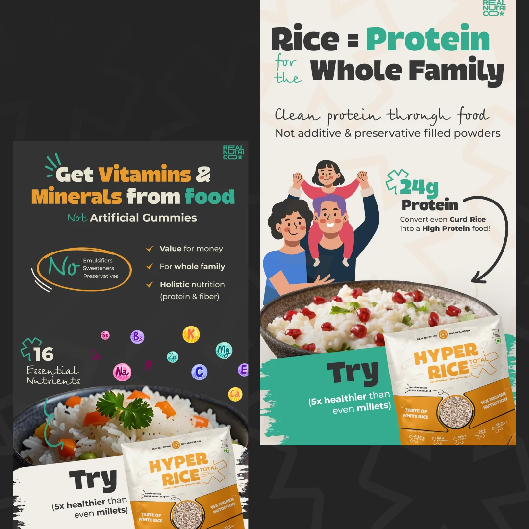 RealNutriCo, an innovative health and nutrition brand, set out to disrupt the stagnant rice market with its high-protein rice. The challenge? Most consumers had never questioned their rice before. Our role as their external marketing team was to build the brand from the ground up—crafting a compelling narrative, developing a digital presence, and executing a marketing strategy that educated consumers while creating real engagement.